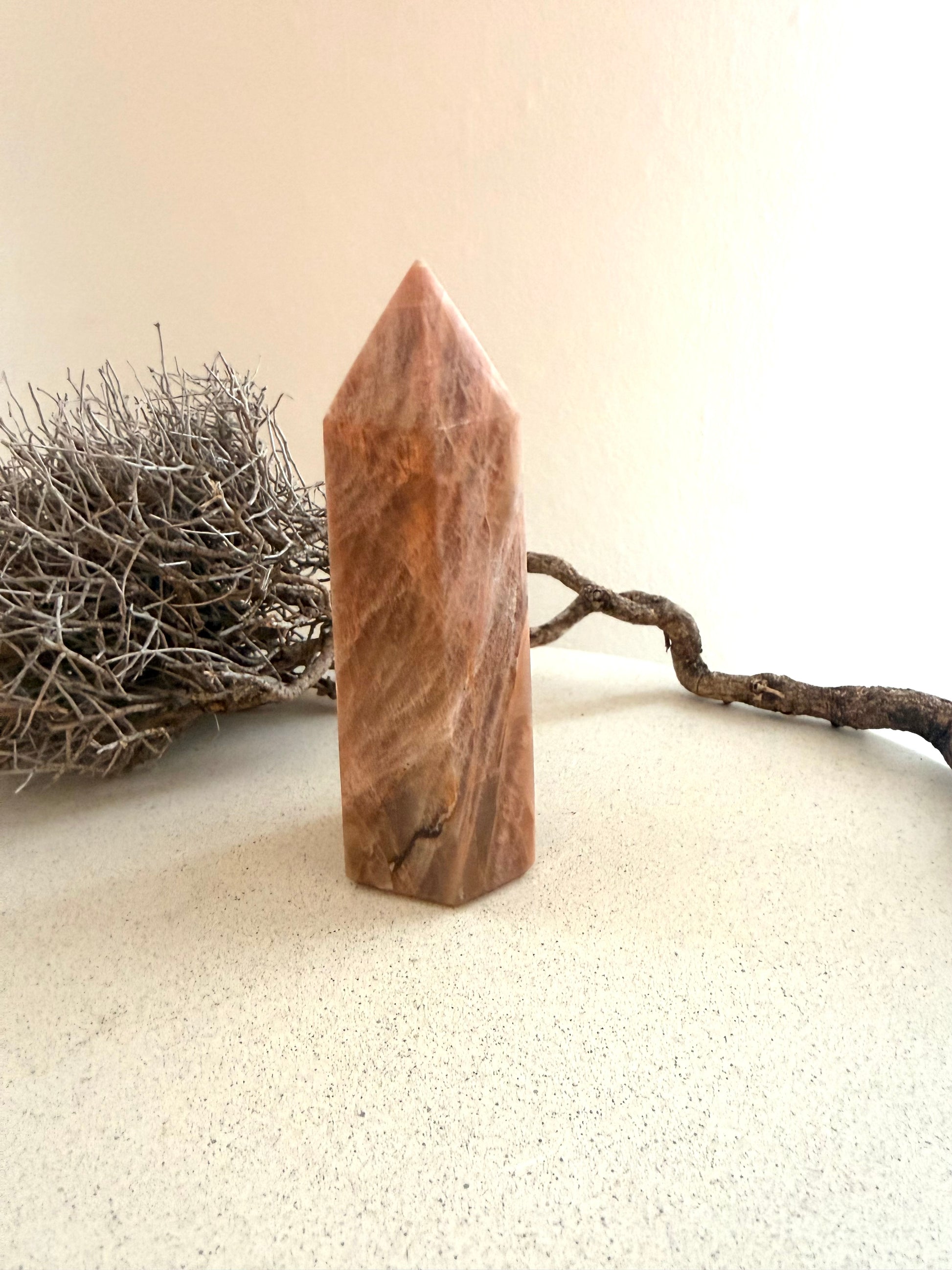 Die Turmform bündelt die Energie des Steins und richtet sie nach oben aus. Dadurch wird er oft als Stein der Ausrichtung und Klarheit wahrgenommen – wie ein energetischer Anker, der dich daran erinnert, wieder in Verbindung mit dir selbst zu kommen.