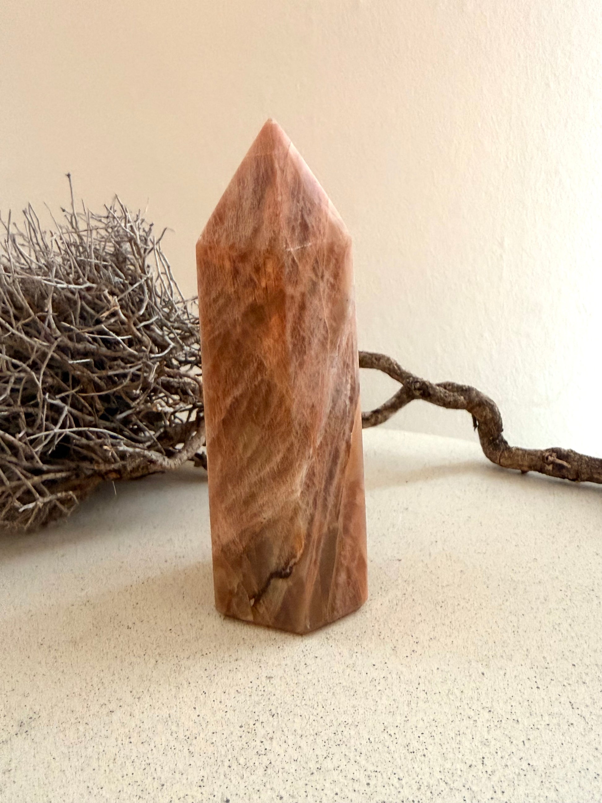 Du kannst den Turm während deiner Meditation vor dich stellen und deine Aufmerksamkeit auf seine Energie richten. Manche platzieren ihn bewusst auf einem Altar, auf dem Nachttisch oder an einem Ort, an dem sie zur Ruhe kommen möchten. Auch während Journaling, Reflexion oder bei Neumond- und Vollmondritualen wird der Mondstein gerne genutzt, um Intuition und Bewusstsein zu stärken.