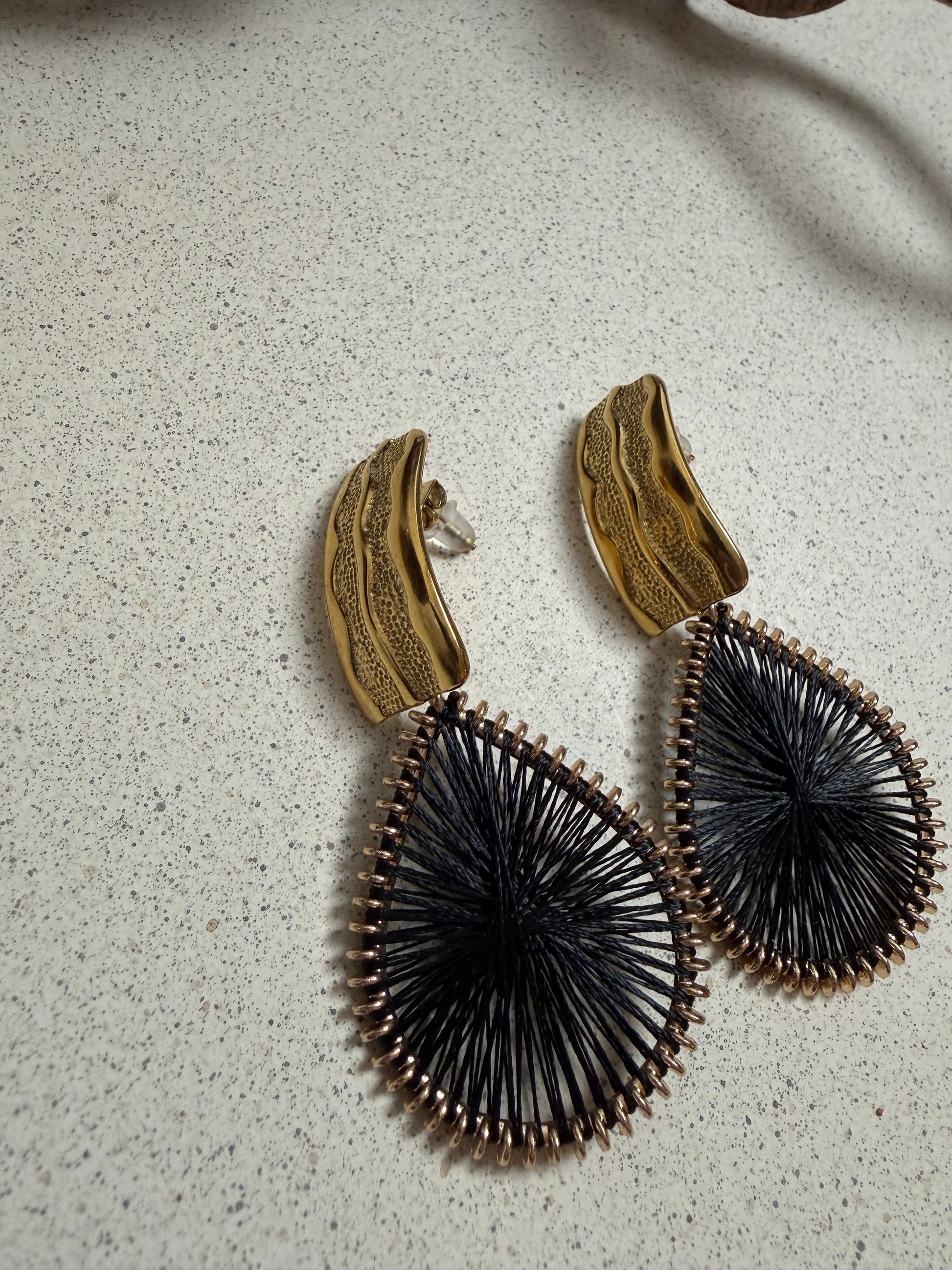 Die NOIRÉ Statement-Ohrringe verbinden facettierte Formen mit ausdrucksstarker Textur und hochwertigen Materialien. Jedes Paar ist ein handgefertigtes Einzelstück und unterscheidet sich bewusst in Struktur, Oberfläche und Farbwirkung.