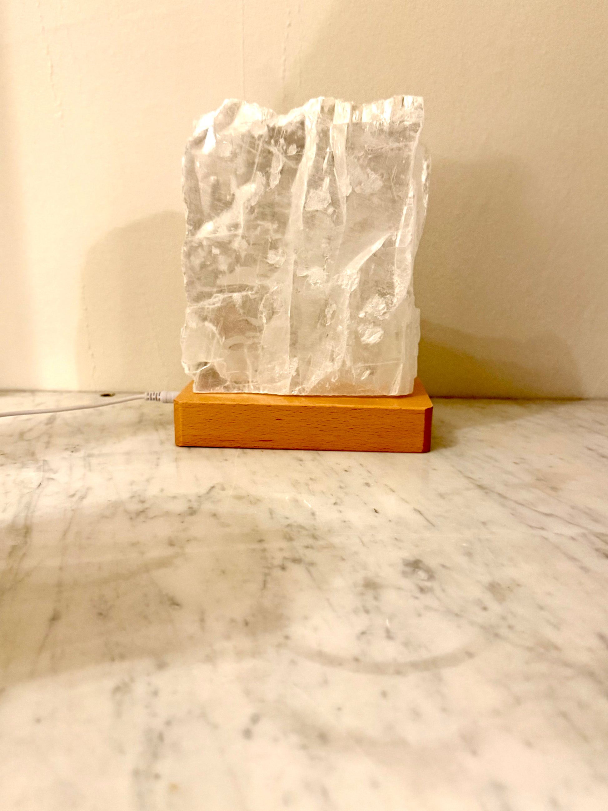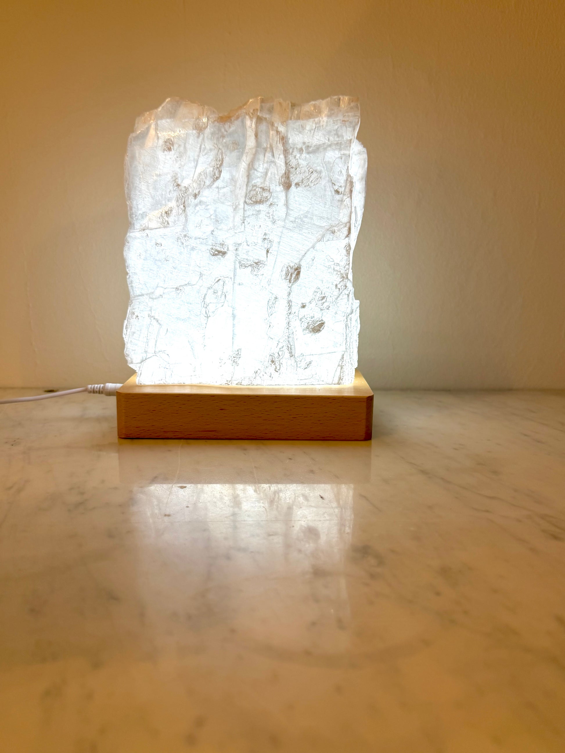 Selenit – auch als Marienglas bekannt – steht für Klarheit, Ruhe und feine Ausrichtung. In Lampenform entfaltet der Stein seine Wirkung besonders sanft über Licht und Raum.