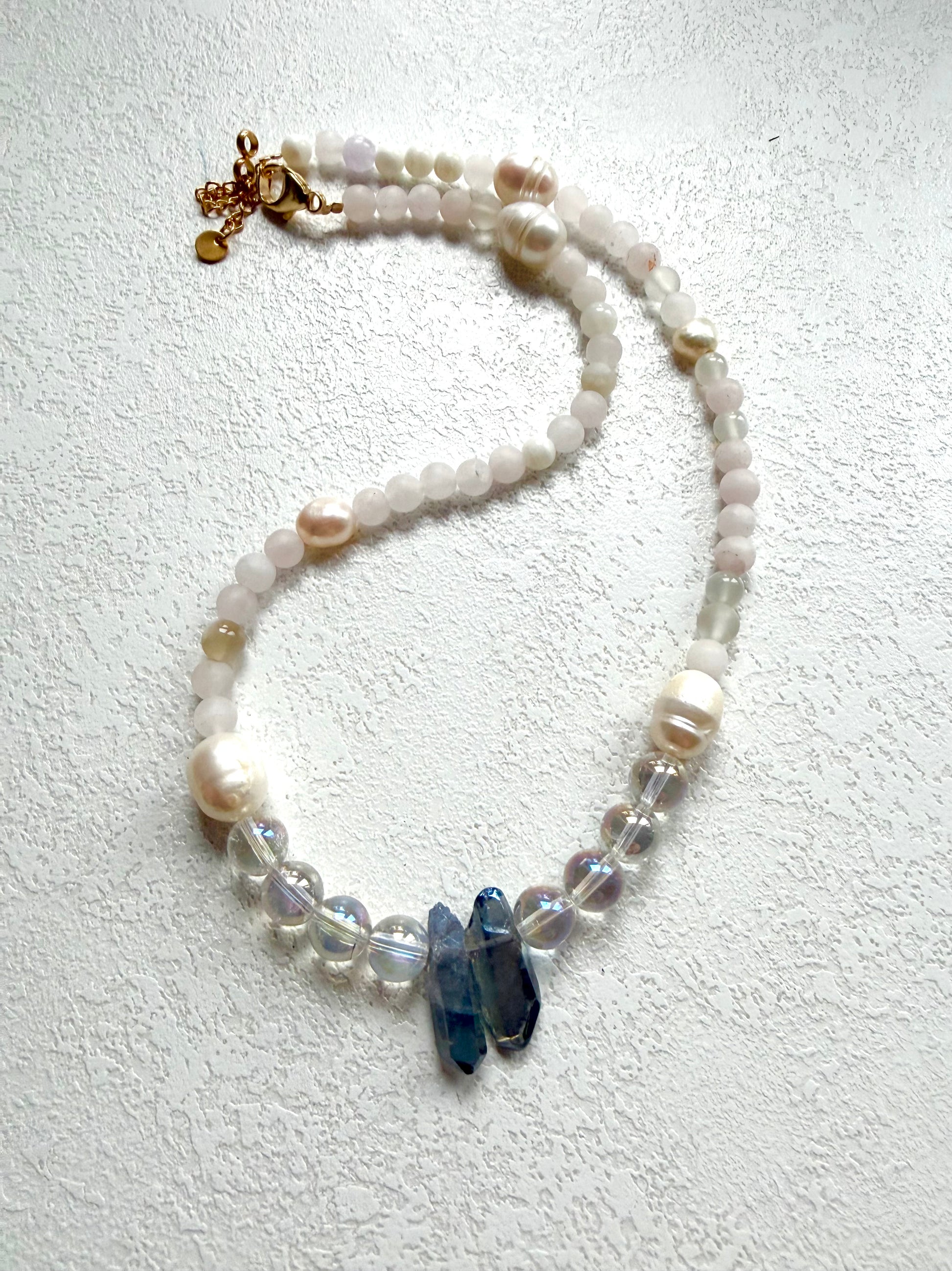 Aqua Aura · Angel Aura · Rosenquarz · Mondstein · Achat · Perlen