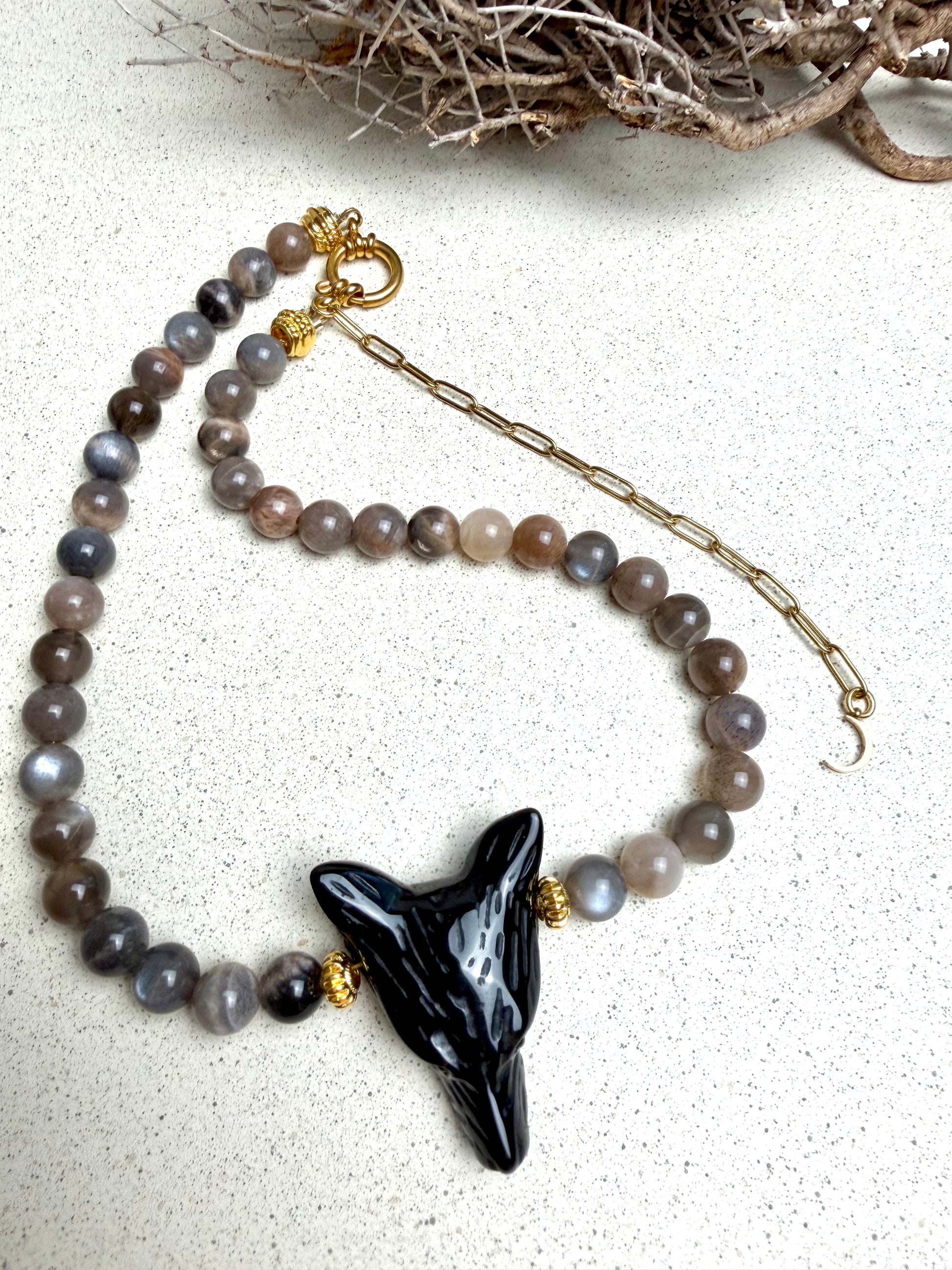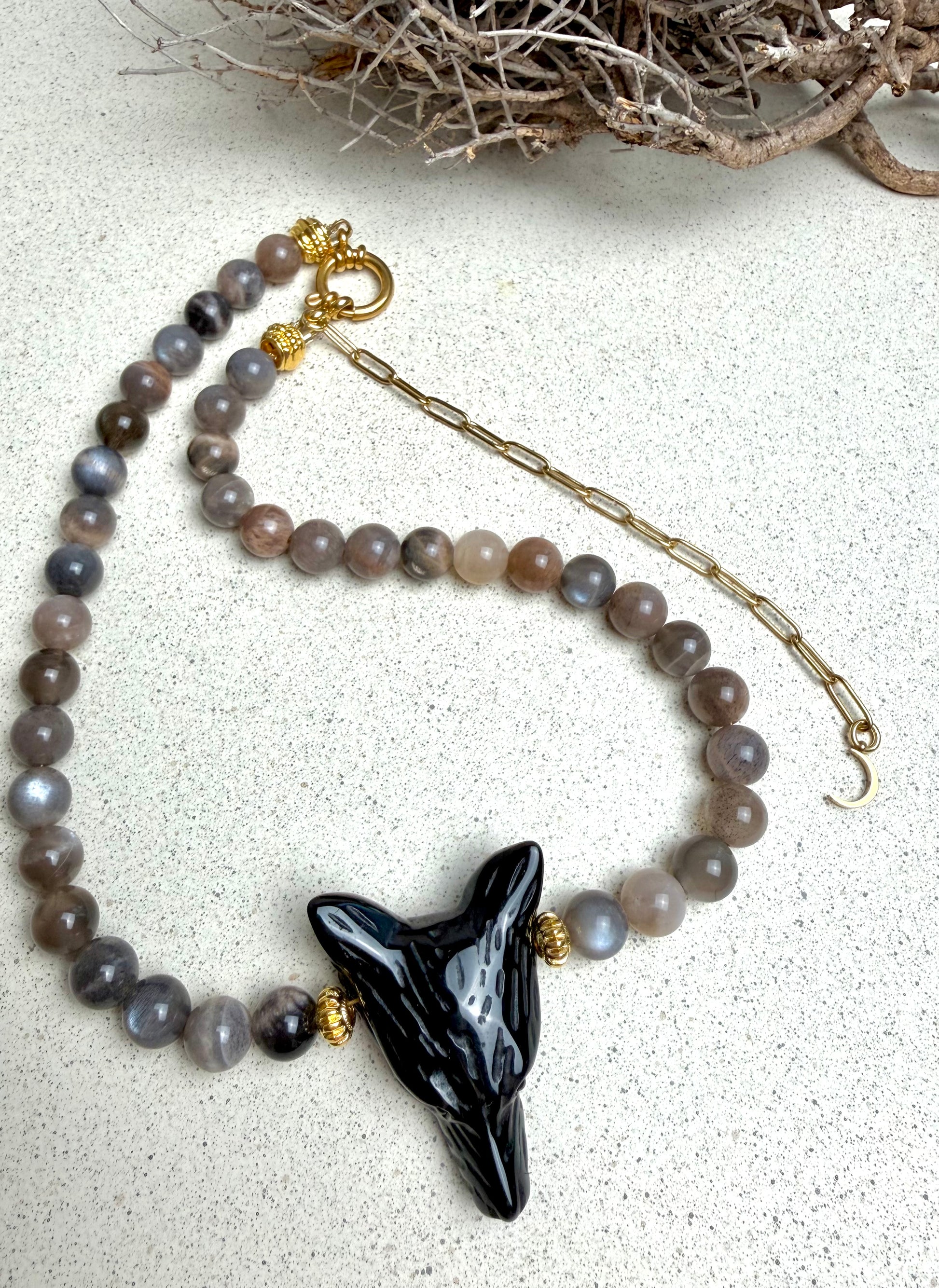 Wolf-Whisperer Shadow Kette – Obsidian & Dunkler Mondstein